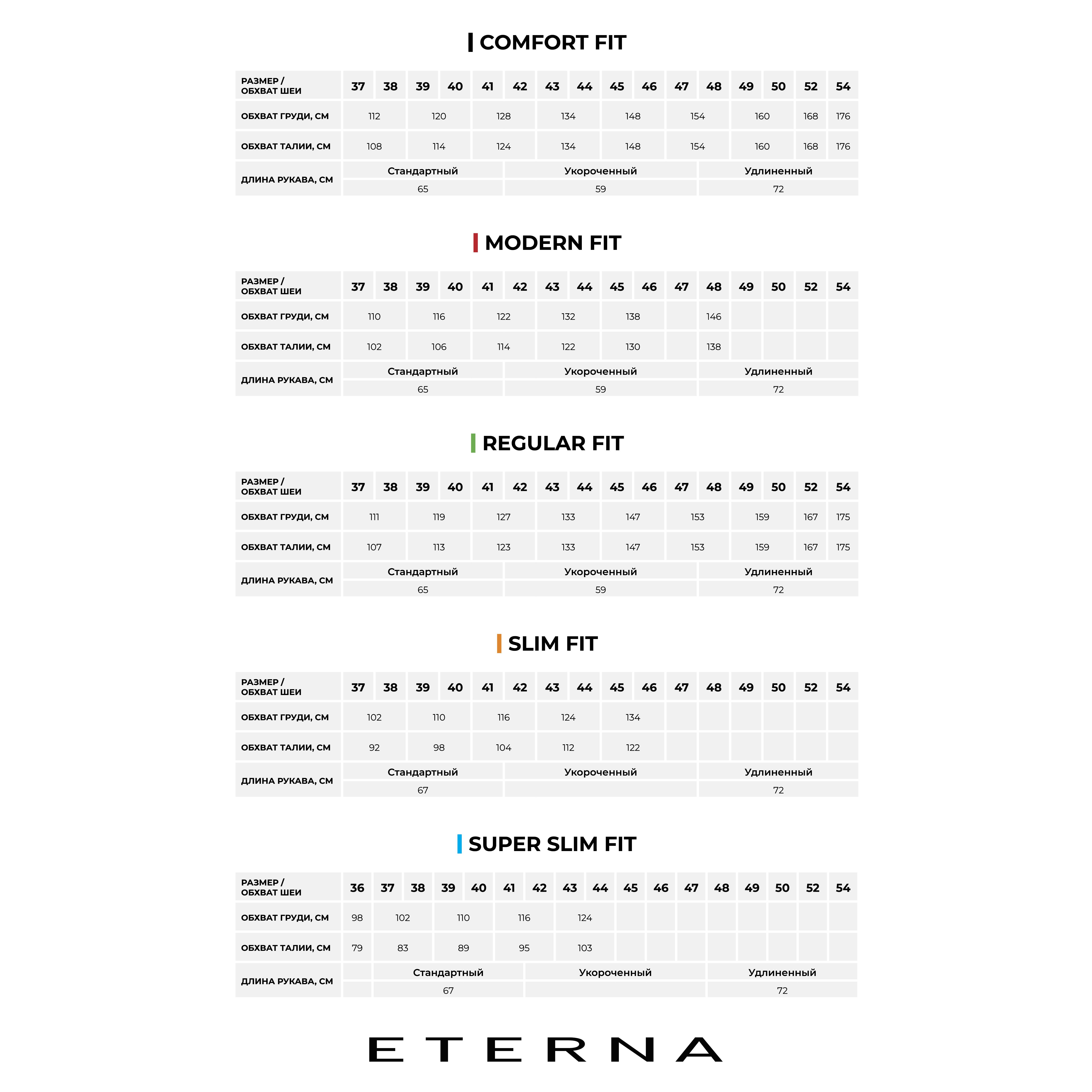 Вся одежда Eterna отличается безупречным исполнением, вниманием к деталям и материалами высокого качества. Производитель использует хлопок, шелк, шерсть, использует современные технологии и имеет сертификат Oeko-Tex 100, подтверждающий, что все нити, красители и обработки, использованные при производстве, не несут вреда человеку и окружающей среде.