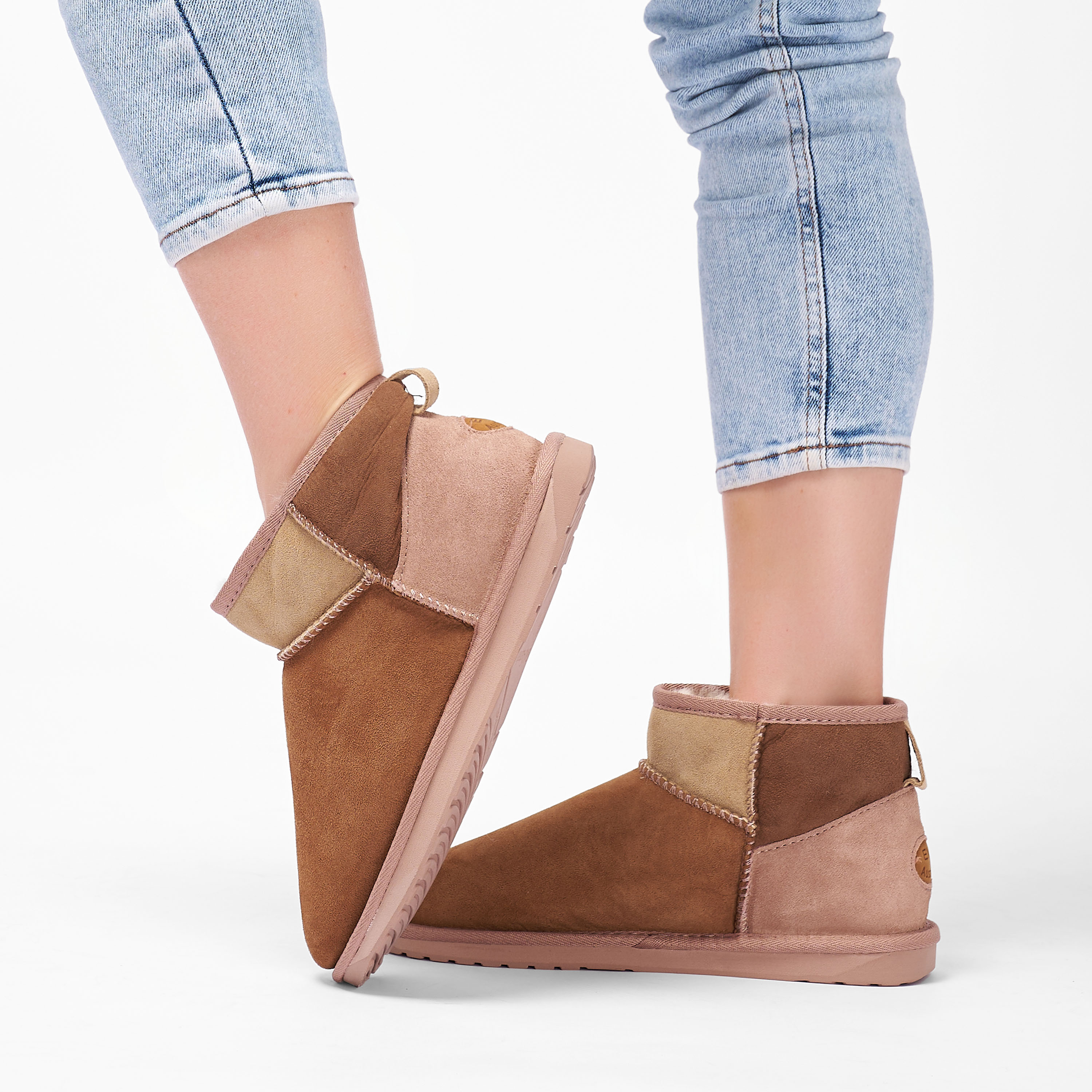 Женские полусапоги из овчины (угги) EMU Australia, цвет коричневый Модель: Stingers Stinger Micro Patchwork, арт: W13185
